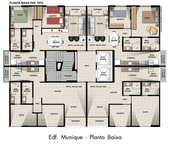 Terminação 01 e 04 - Tipo "B" => área privativa de 49,90m2